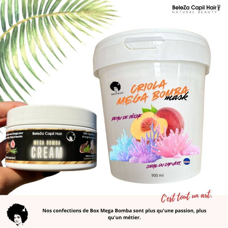 - La Délicieuse et Gourmande. CRIOLA MEGA BOMBA Mask. Ce masque d’hydratation intense et profonde, au format grandeur nature. Vous êtes prêt(e) à devenir une MEGA BOMBA? 3...2...1.... C’est parti ! - ÉDITION LIMITÉE -  Il s'agit d'un masque capillaire hydratant, nourrissant et fortifiant. CRIOLA Mega Bomba mask c'est un délice et une gourmandise tel un véritable dessert capillaire. Ce masque soin est conçu pour adoucir considérablement votre fibre capillaire en un instant, embellir et soigner vos cheveux secs. Cette nouvelle formule répare vos cheveux abîmés et fragilisés. Une alliance entre la science et la nature pour un effet glossy et soyeux. Son parfum décuple vos sens et vous apporte un plaisir sensoriel. Procurez-vous une explosion d'énergie et de vitalité grâce à CRIOLA Mega Bomba mask et transformer vos cheveux dès la première application. Cette fusion entre la pêche et les minéraux marins du corail, repulpent et redonnent corps et densité à chaque mèche. Un duo gagnant de fruits et d'algues coralines pour un résultat incroyable ! Sa formule EXTRA Riche pénètre au cœur du cheveu et le restructure. Elle lui apporte de l'élasticité, de la force, et une grande souplesse. Les acides de fruits naturels exfolient en douceur, purifient votre cuir chevelu et font briller votre crinière. Vous ne pourrez plus vous en passer. Votre rituel de renaissance capillaire est enfin chez vous !